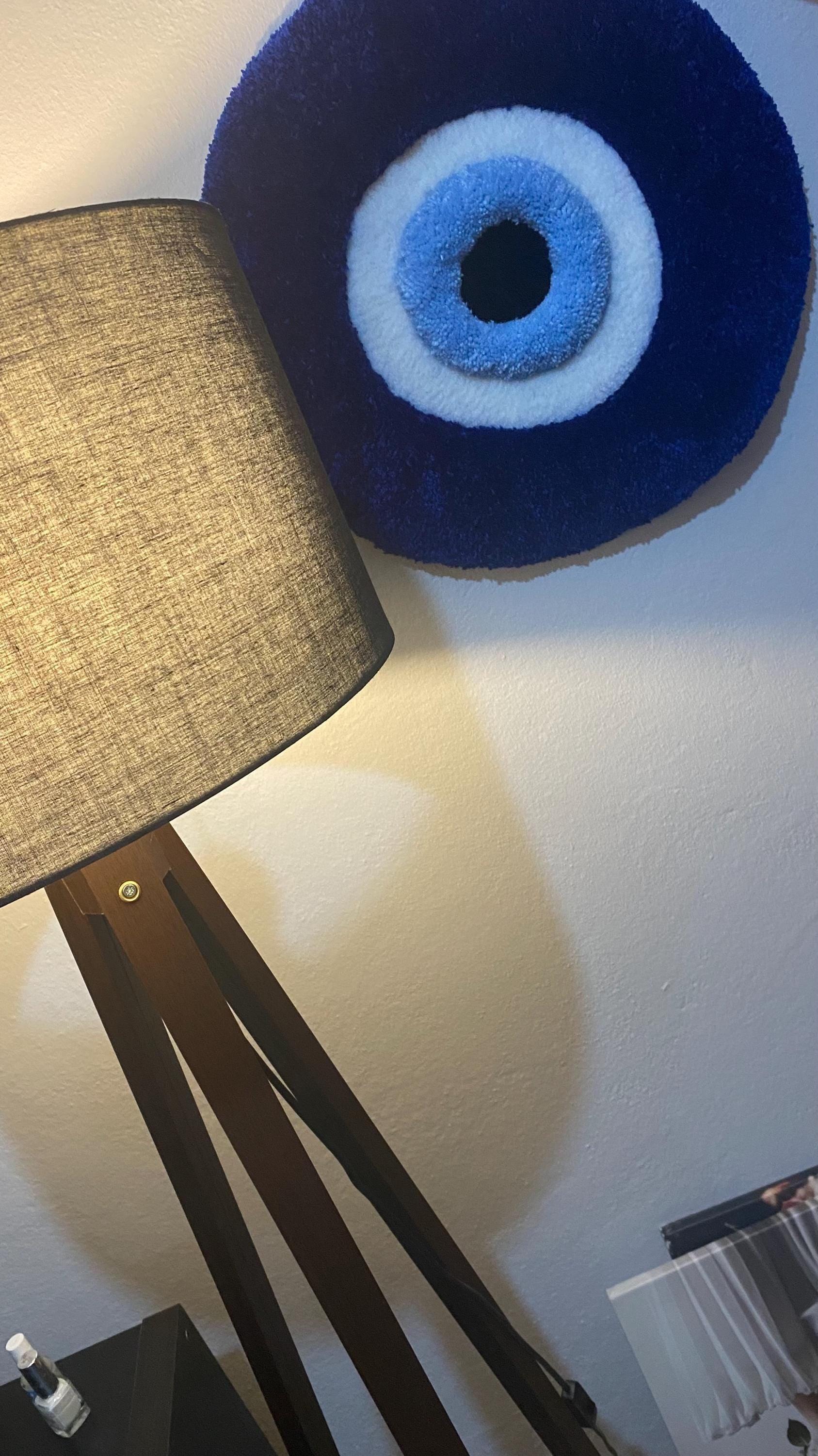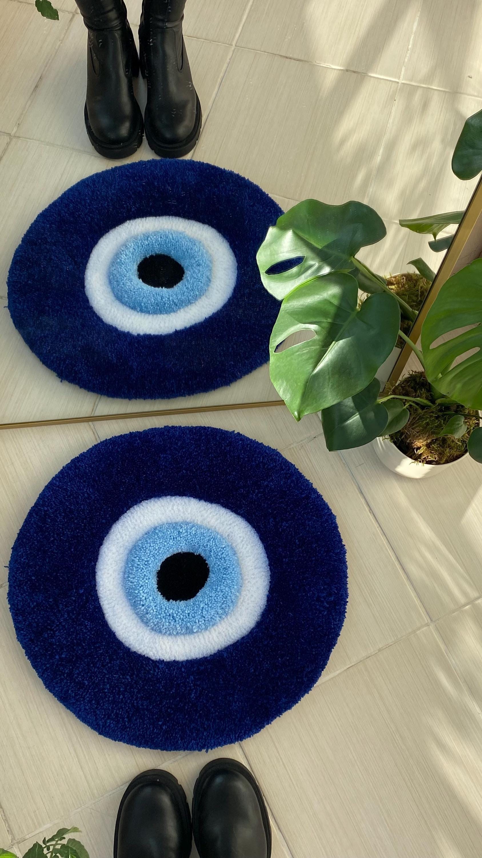 50 cm boyutlarında, geleneksel Türk nazar boncuğu tasarımıyla hazırlanmış bu el yapımı tufting halı, hem koruyucu bir sembol hem de göz alıcı bir duvar sanatı parçası. 3D kabarık dokusu ve mavi-beyaz renk kombinasyonuyla Türk kültürünün ikonik sembolünü evinize taşır.
