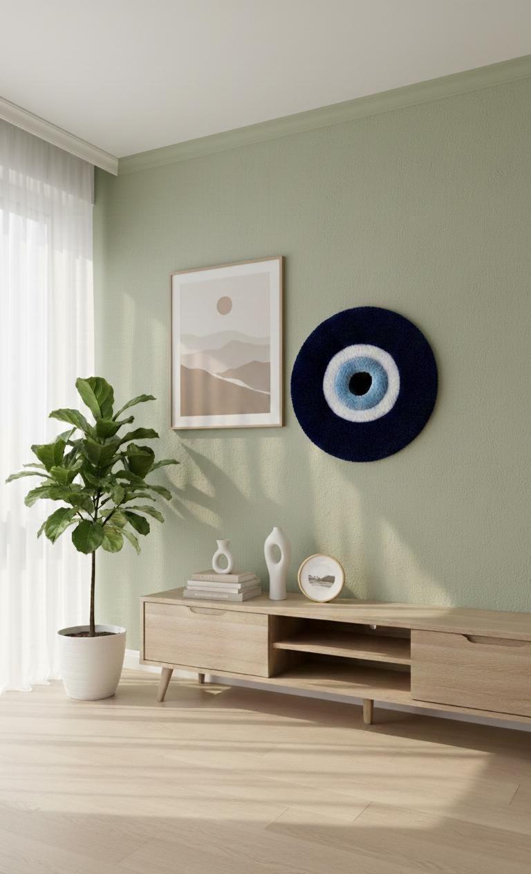 Oturma odanızda, yatak odanızda, giriş holünüzde veya duvarınızda göz alıcı bir koruyucu sanat eseri olarak kullanabilirsiniz. Türk kültürü, evil eye dekorasyonu, boho tarzı ve benzersiz el yapımı hediye arayanlar için ideal. Yeni eve taşınanlar için harika bir hediye seçeneği!