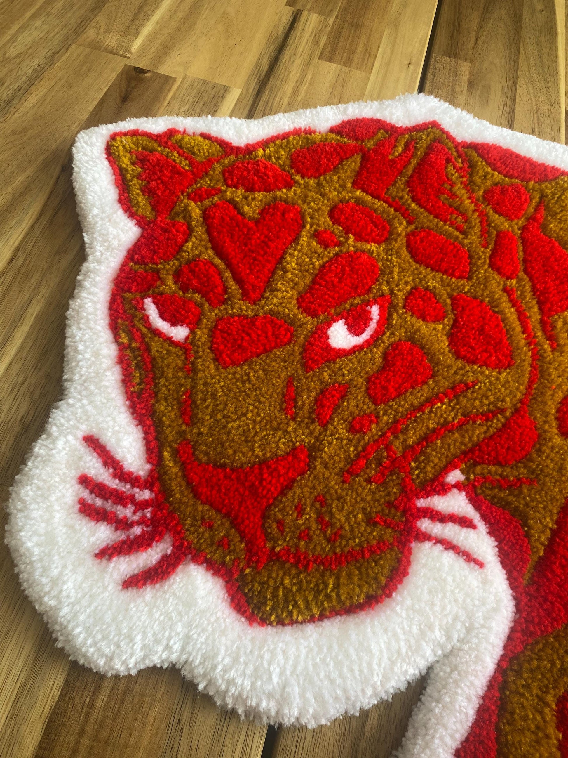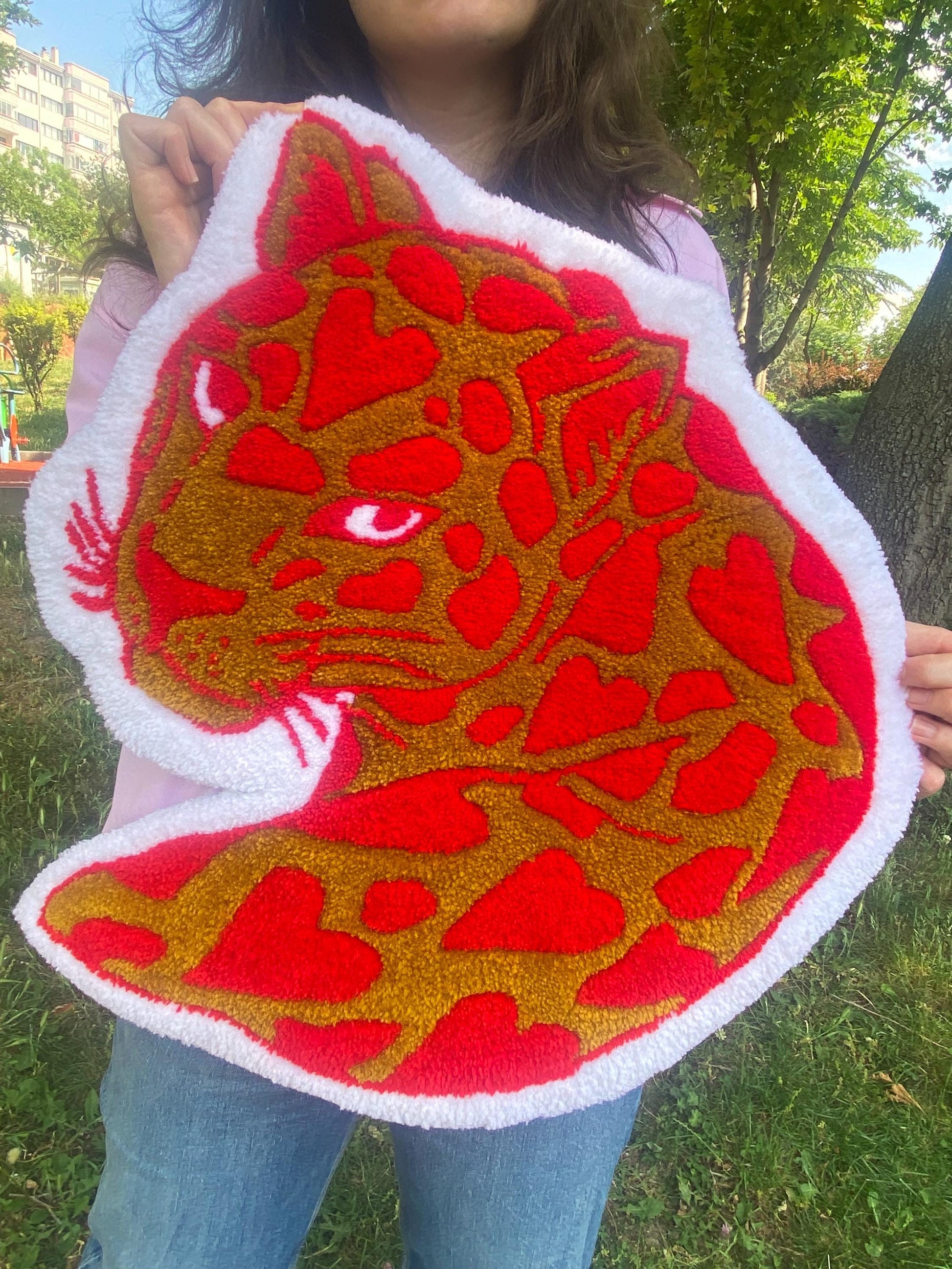 53x53 cm boyutlarında, sevimli aslan tasarımıyla hazırlanmış bu el yapımı tufting halı, hem duvar süsü hem de zemin paspası olarak kullanılabilen çok amaçlı bir dekorasyon parçası. Yumuşak akrilik ve pamuk iplik karışımıyla özenle hazırlanmış bu benzersiz hayvan halı, çocuk odaları ve bebek odaları için mükemmel!